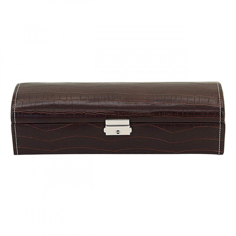 Серія скриньокLe Crocрозрахована для зберігання 5 годин. Зовнішнє оздоблення скриньки виконано з екошкіри крокодила насичено коричневого кольору, має куполоподібну кришку & замок.