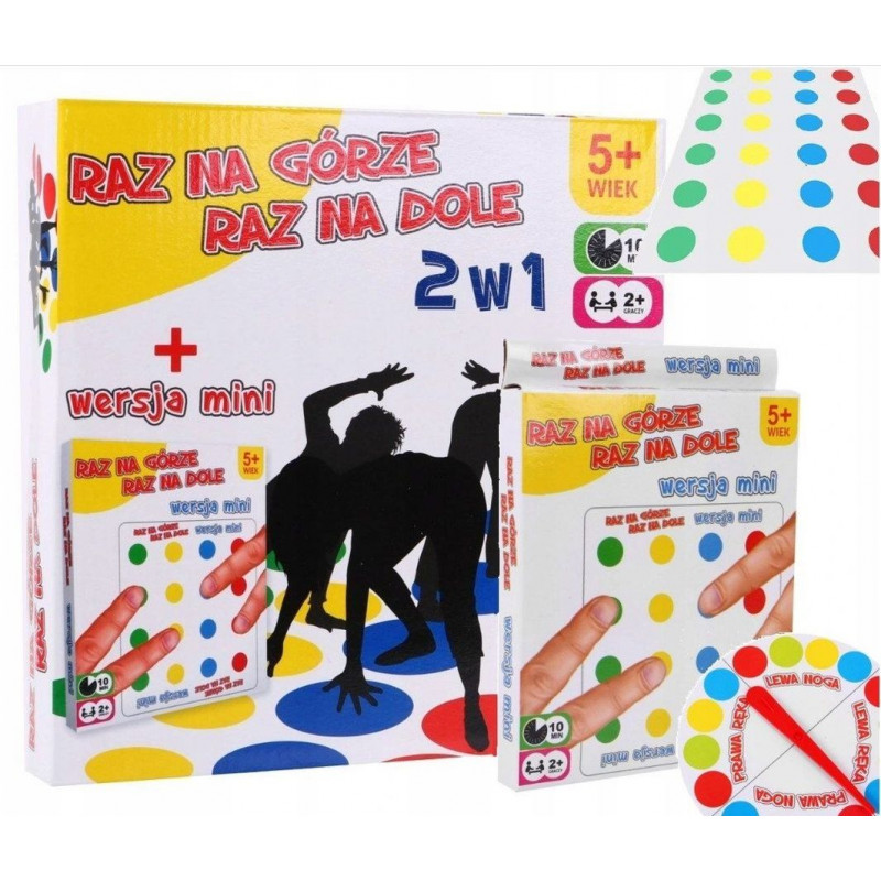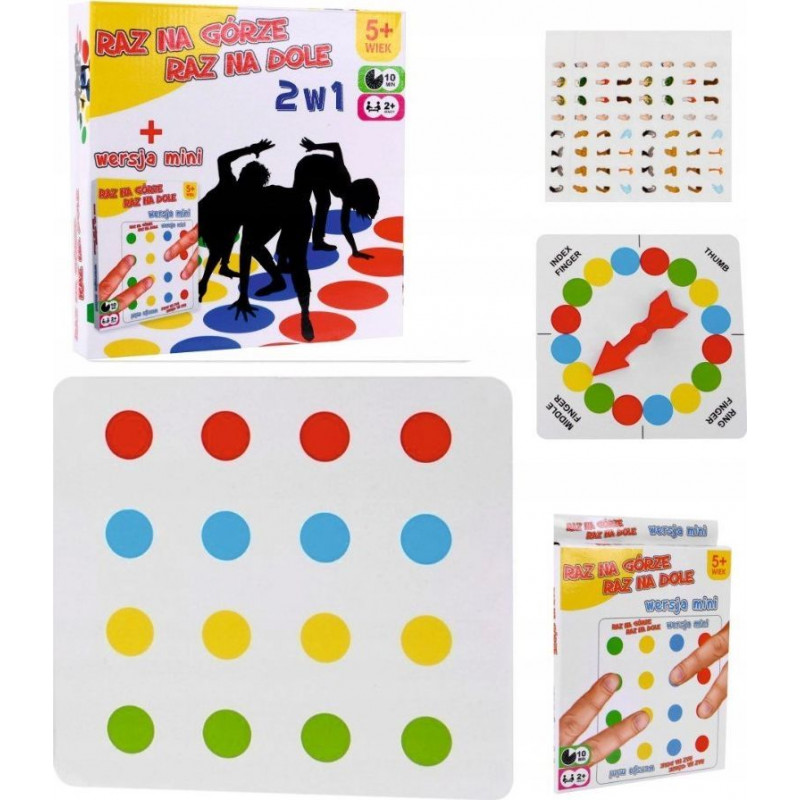 Цей набір з 2 ігор з кольоровими колами призначений для гри на спритність «Once Up Once Down ». У гру можуть грати діти віком від 3 років, але вона стане чудовою розвагою і для дорослих. Окрім традиційного килимка, до набору входить міні-версія гри, де правила залишаються тими самими, але використовуються лише пальці.