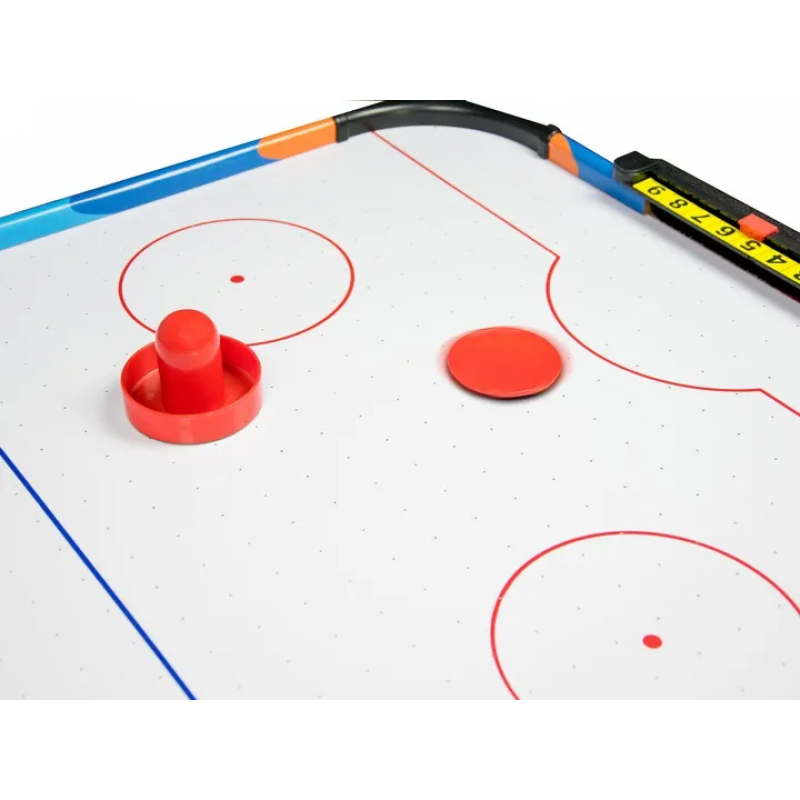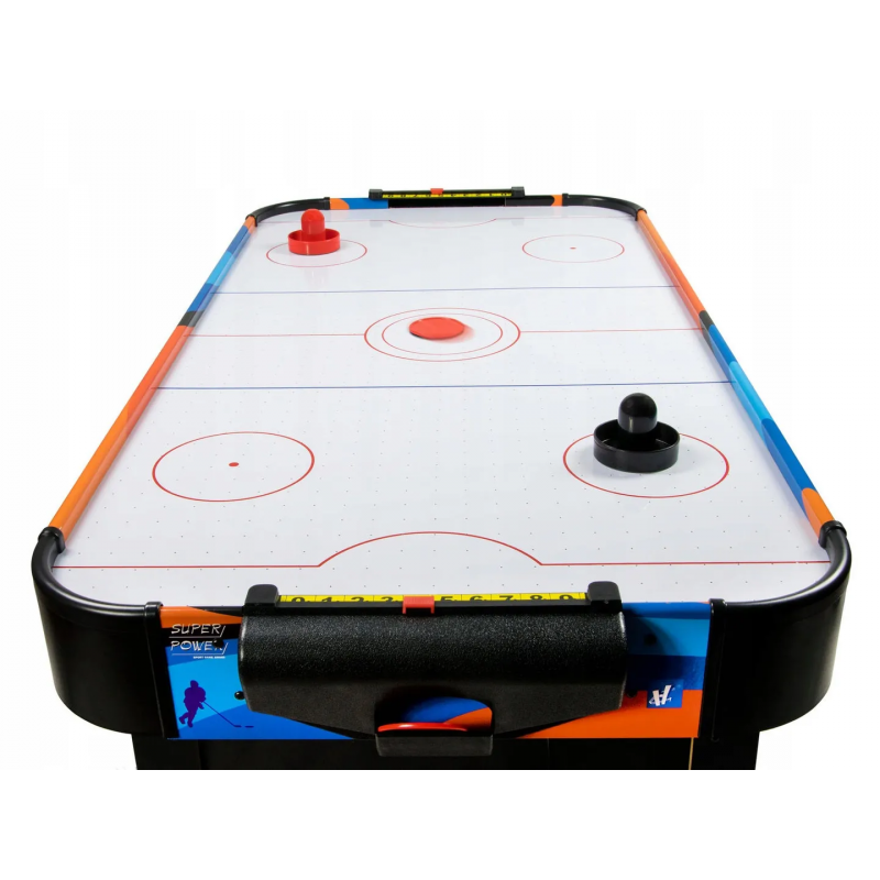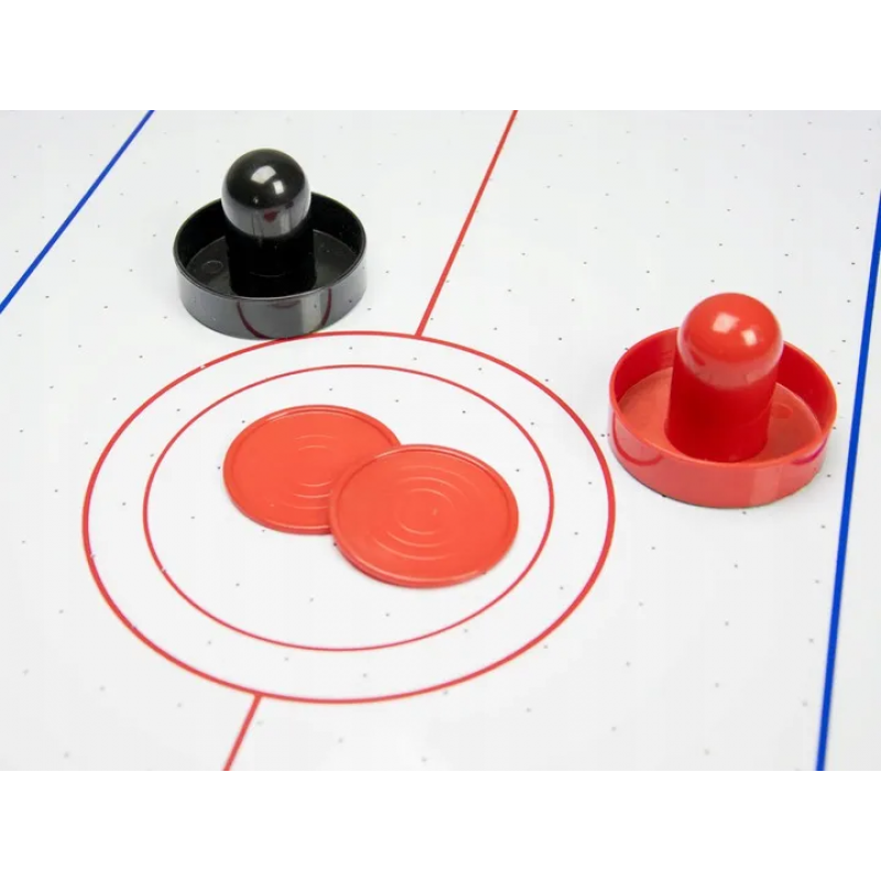 Стіл для Air Hockey можна розкласти в одну мить, адже його міцна, стабільна конструкція є одночасно простою та інтуїтивно зрозумілою. Він розроблений так, щоб гарантувати гравцям комфорт під час багатьох довгих ігор. Чому Air Hockey має таку динаміку? Стіл має вбудований механізм Air Flow, тобто спеціальний вентилятор, який через перфоровану поверхню видуває повітря, злегка піднімаючи шайбу. Air Flow дає ефект, схожий на ковзання шайби по кризі.