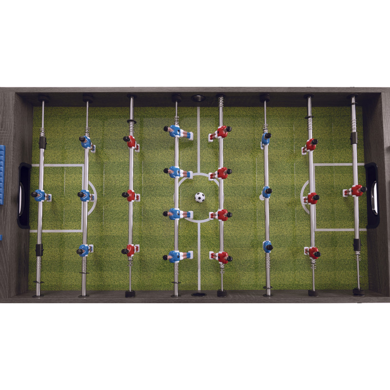 - Прямокутні ніжки із МДФ 9 х 6 см із меламіновим покриттям та хромовані сполучні планки забезпечують максимальну стійкість під час гри.