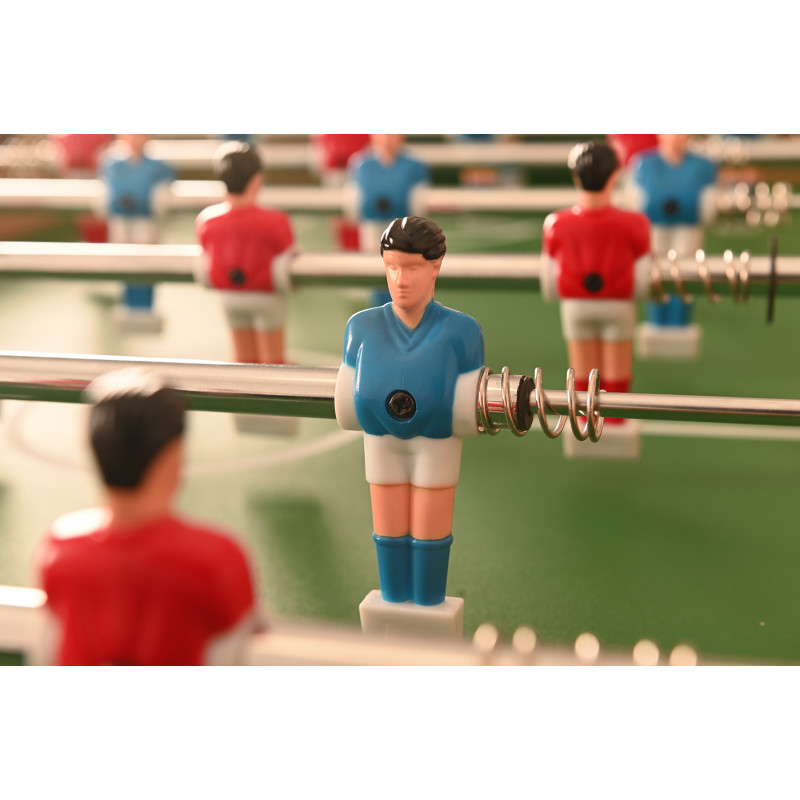 - Фігурки гравців червоного та синього кольору закріплені на штангах індивідуально.