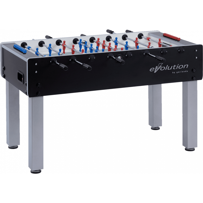 Настільний футбол Garlando G-500 Evolution Telescopic (G500NERCVL) - професійна модель лінійки Evolution, спеціальної серії з трьох футбольних столів, яка також включає F-200 Evolution і G-2000 Evolution. Міцна конструкція стола має елегантне поєднання чорного та сріблястого кольорів, натхненного стилем хай-тек. Модель виготовлена безпосередньо в Італії з високоякісних матеріалів, що забезпечують довговічність і задоволення від гри, з урахуванням конкретних вимог, яким повинен відповідати футбольний стіл. Цей стіл характеризується надійністю та стійкістю, що робить його придатним для гри в будь-якому місці: від дому до офісу та бару. У 1999 році журналісти British Sport Magazine назвали G-500 кращим футбольним столом року в своїй ціновій категорії. Також G-500 був кастомізований сотнями відомих брендів, які вибрали цю модель завдяки простим лініям корпусу, особливо придатним для підкреслювання логотипів і корпоративних кольорів. Настільний футбол Garlando G-500 Evolution Telescopic (G500NERCVL) відповідає європейським стандартам безпеки EN 71-1, 71-2, 71-3 та 71-9.