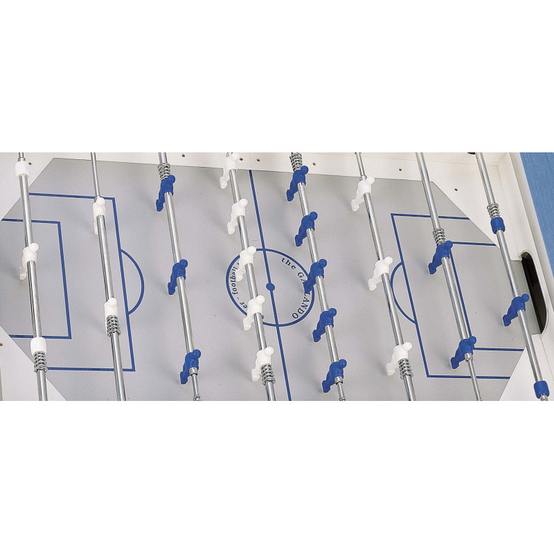 Настільний футбол Garlando G-500 Weatherproof Blue (G500WBLGULLA) - професійна вулична модель із регульованими ніжками. Стіл виготовлений безпосередньо в Італії з високоякісних матеріалів, що забезпечують довговічність і задоволення від гри, з урахуванням конкретних вимог, яким повинен відповідати футбольний стіл. Він розрахований для використання на відкритому повітрі влітку. Також дану модель можна поставити вдома поза сезоном: занісши його в приміщення, ви пожвавите зимові вечори веселими іграми. Настільний футбол Garlando G-500 Weatherproof Blue (G500WBLGULLA) відповідає європейським стандартам безпеки EN 71-1, 71-2, 71-3 та 71-9.