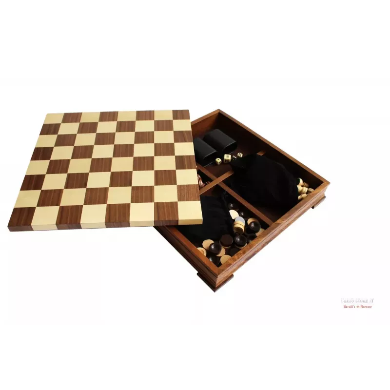 G462 набір 3 в 1 шахи, шашки, нарди 36х36 см "ITALFAMA" кльон та горіх, ручна інкрустрація король