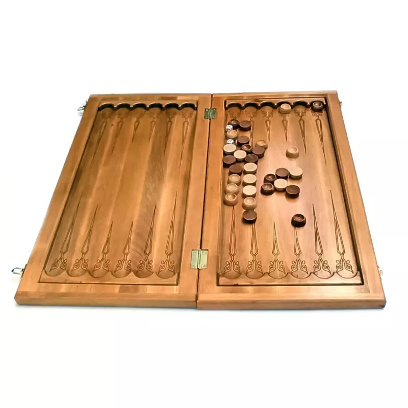 Подарунковий набір 3 в 1 з високоякісного масиву дерева поєднує в собі три популярні настільні розваги: шахи, шашки та нарди.