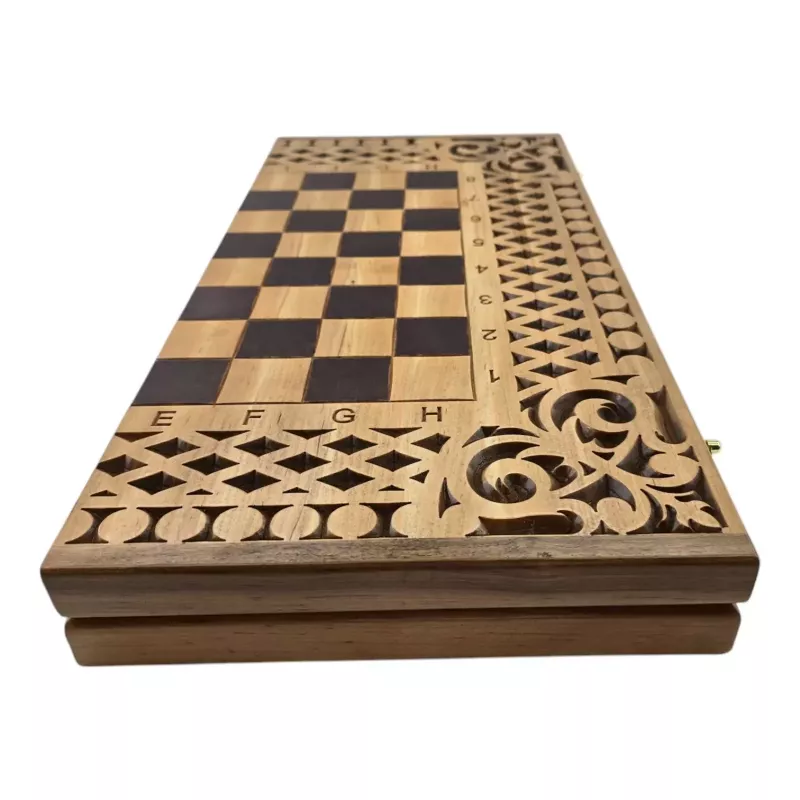 Подарунковий набір 3 в 1 з високоякісного масиву дерева поєднує в собі три популярні настільні розваги: шахи, шашки та нарди.