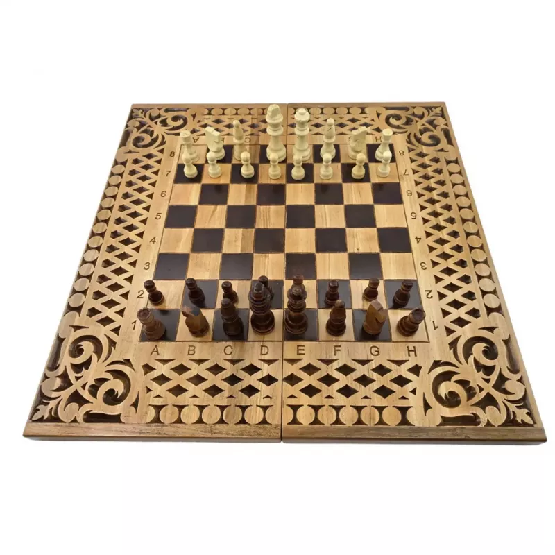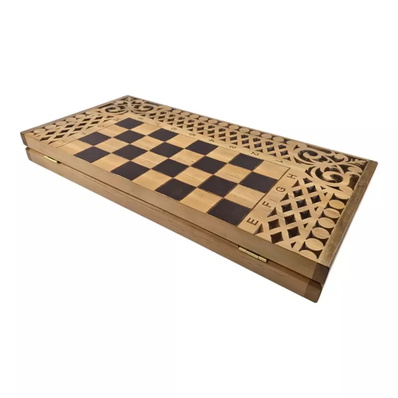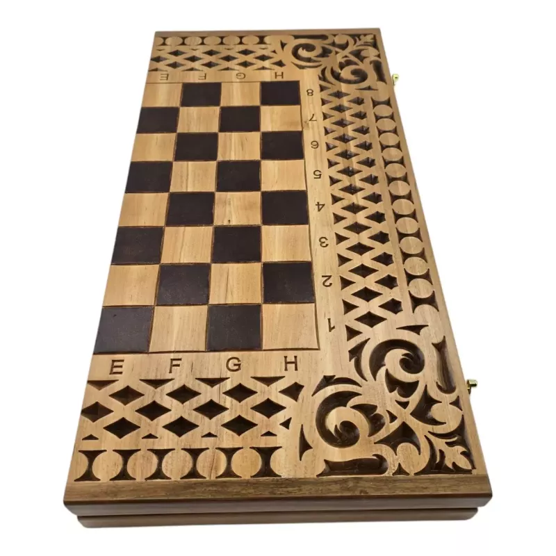 Набір 3 в 1 нарди-шахи-шашки дерев'яні різьблені 57×28×5,2см фігури,фішки дерево,клітина 4,2*4,2 см (DN36053)