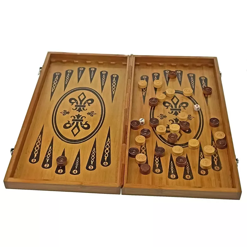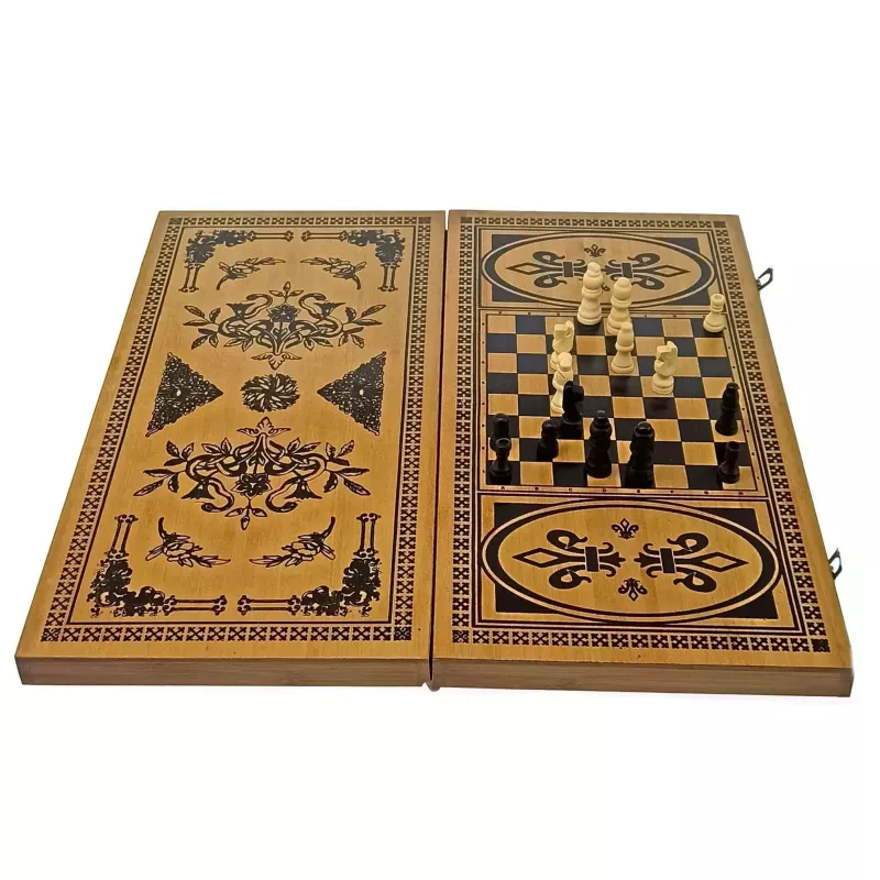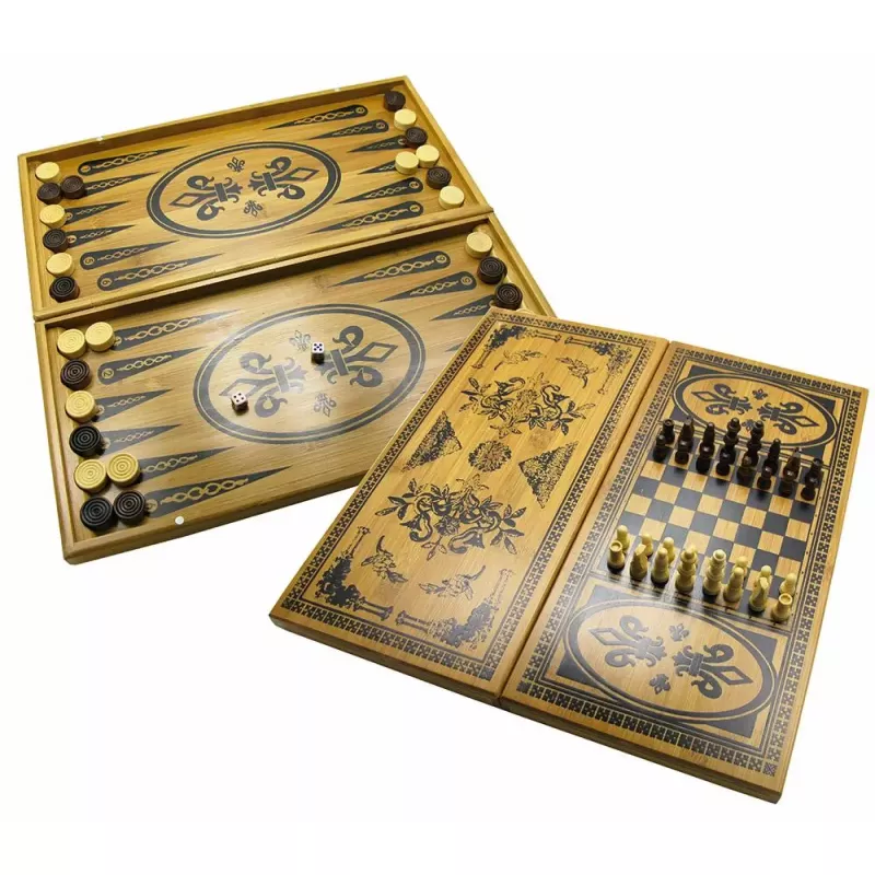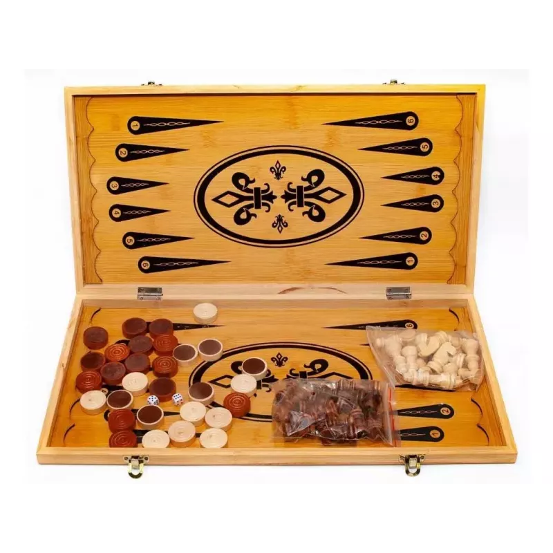 Набір 3 в 1 шахи+шашки+нарди з бамбуку (40*20 см), фігури, фішки - дерево (DN19819)