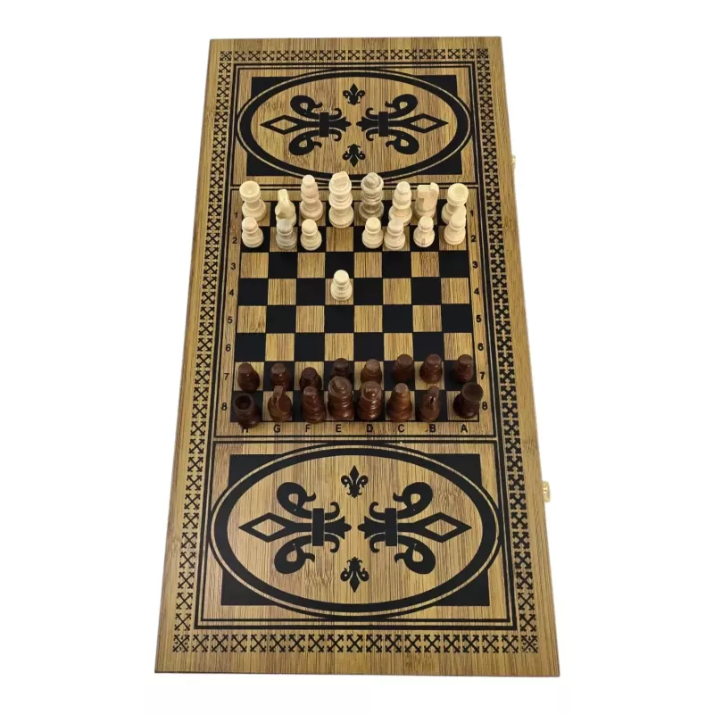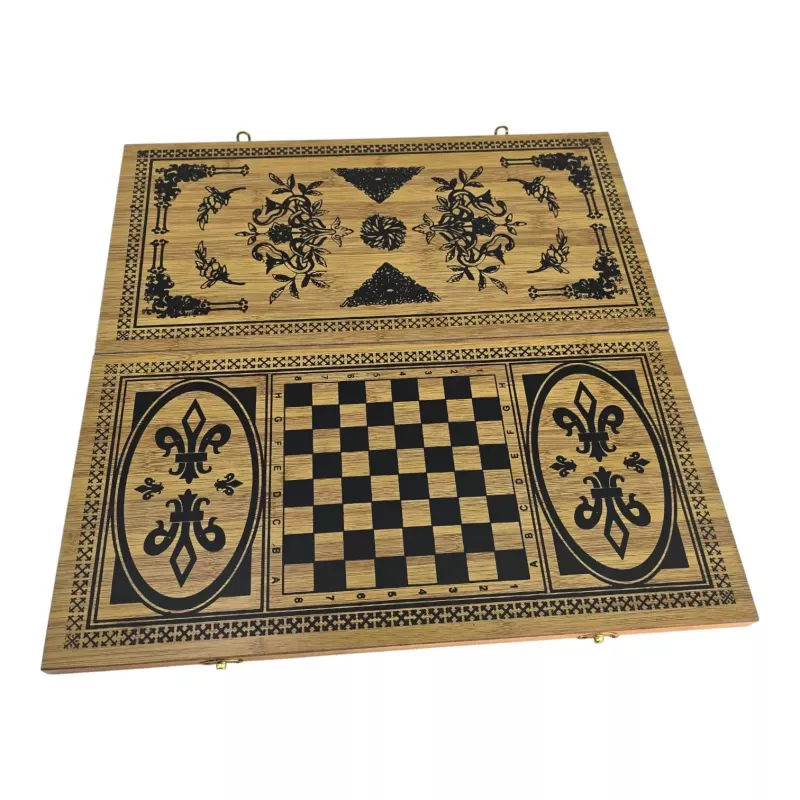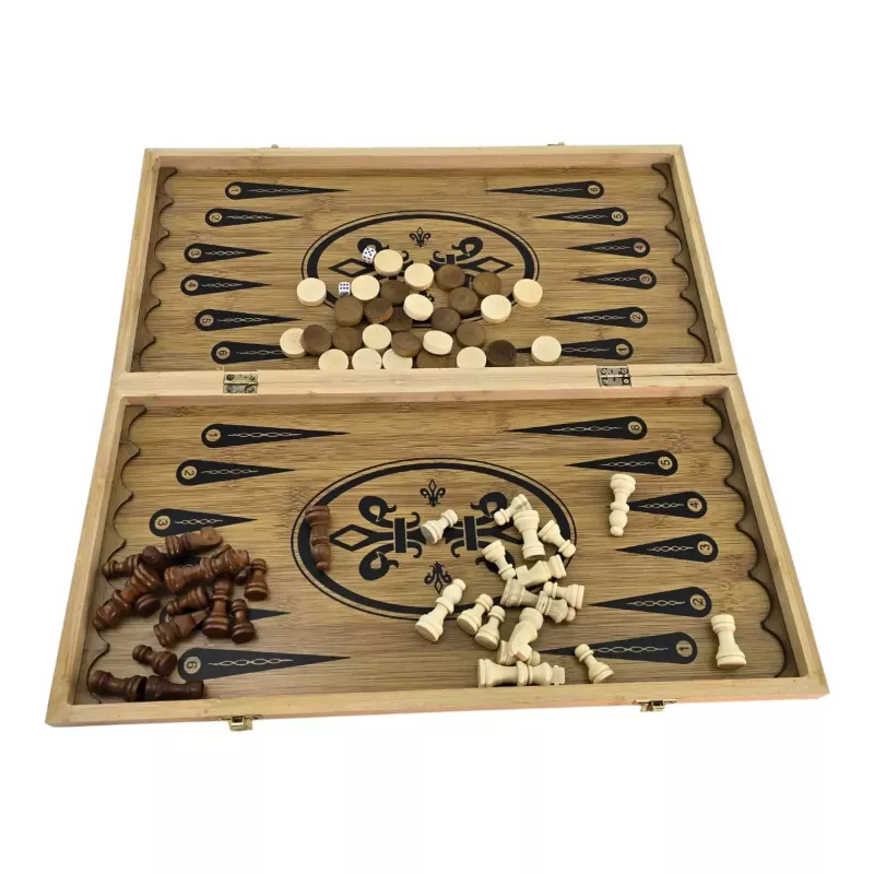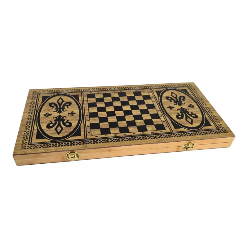Набір 3 в 1 шахмати нарди шашки з бамбуку 48×48 см фігури, фішки дерево (DN23862N)