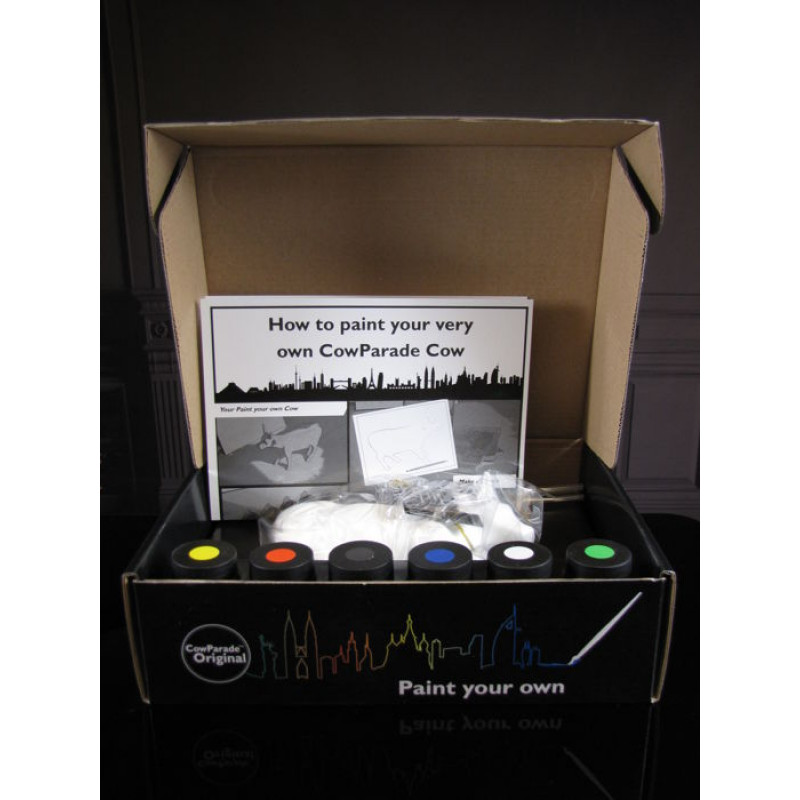 Коллекционная статуэтка корова Paint Your Cow - это возможность создать свою собственную корову и открыть в себе талант художника. С помощью такого оригинального набора из коллекции CowParade можно присоединиться к международному Арт-проекту. Набор состоит из коровы, 6 баночек краски, 3 кистей, инструкции, эскиза, лейбла и все это упаковано в оригинальную подарочную коробку.