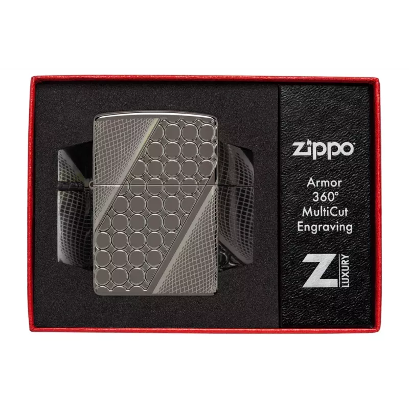 Запальничка армована бензинова ZIPPO Armor® Black Ice® MultiCut Photo Image 360 Elegant Dots Design, чорний лід (46812)