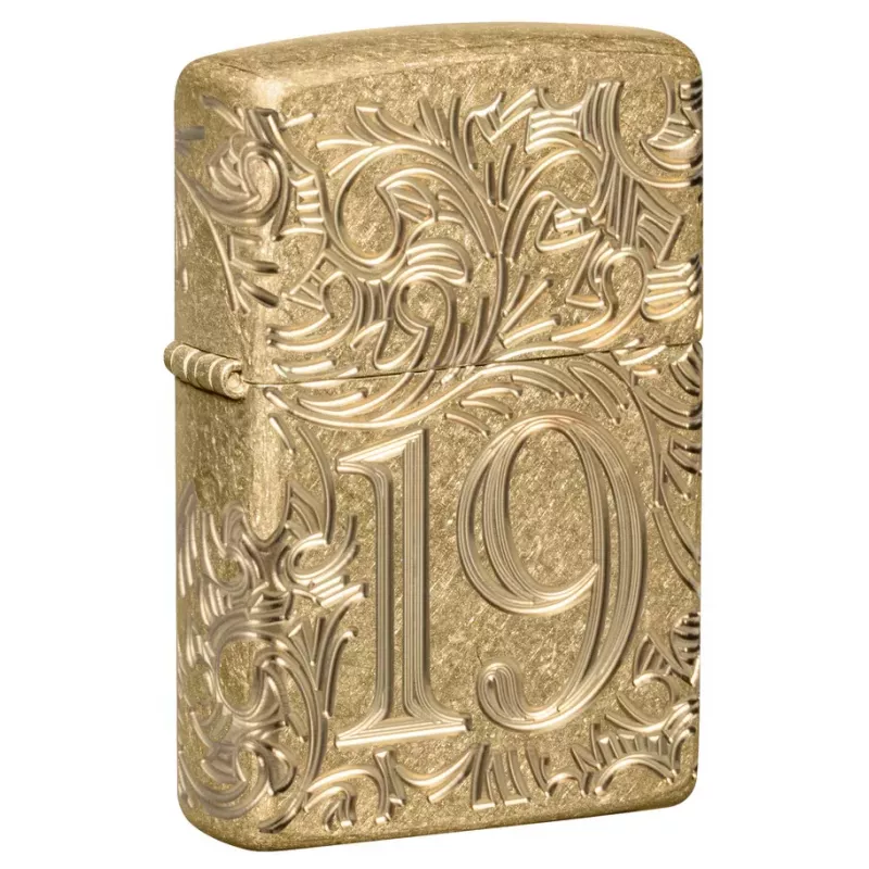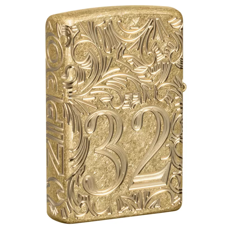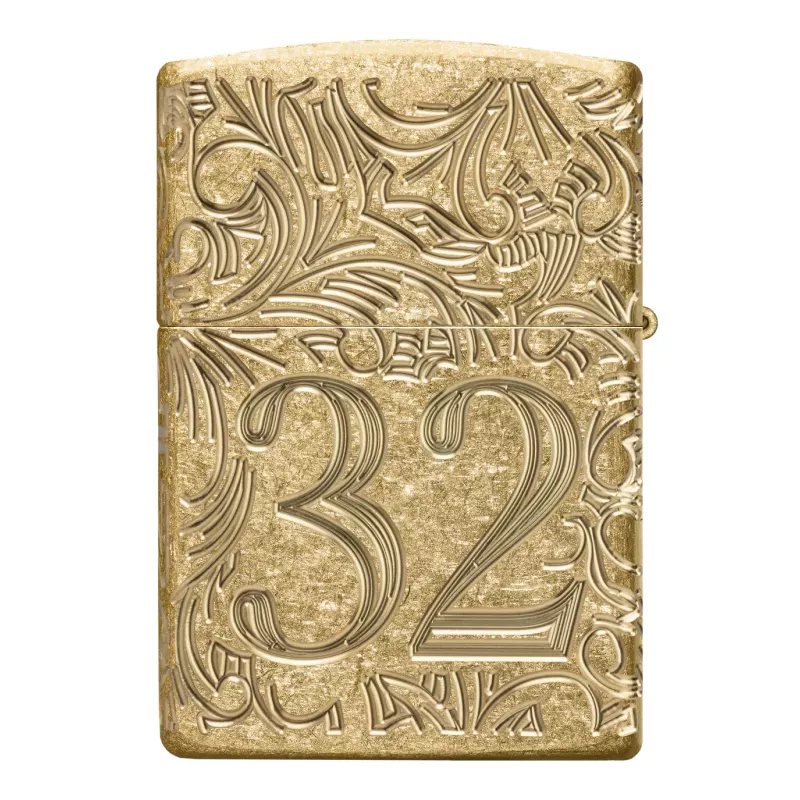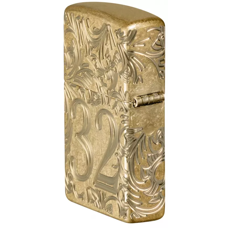Корпус запальнички Zippo 46776 Armor 1932 р. Filigree Design має жовте, матове покриття. Особливість даної моделі це потовщена стінка корпусу запальнички, приблизно в півтора рази, що додає їй вагу і міцність. На корпусі вишуканої запальнички Armor® Tumbled Brass на тлі філігранного візерунка зображено рік заснування компанії Zippo. Цифра 1932, оточена хитромудрим філігранним візерунком, розташована на передній і задній поверхнях, утворюючи безшовний візерунок MultiCut.