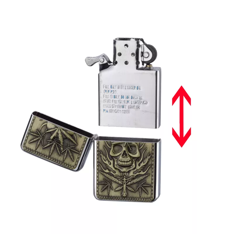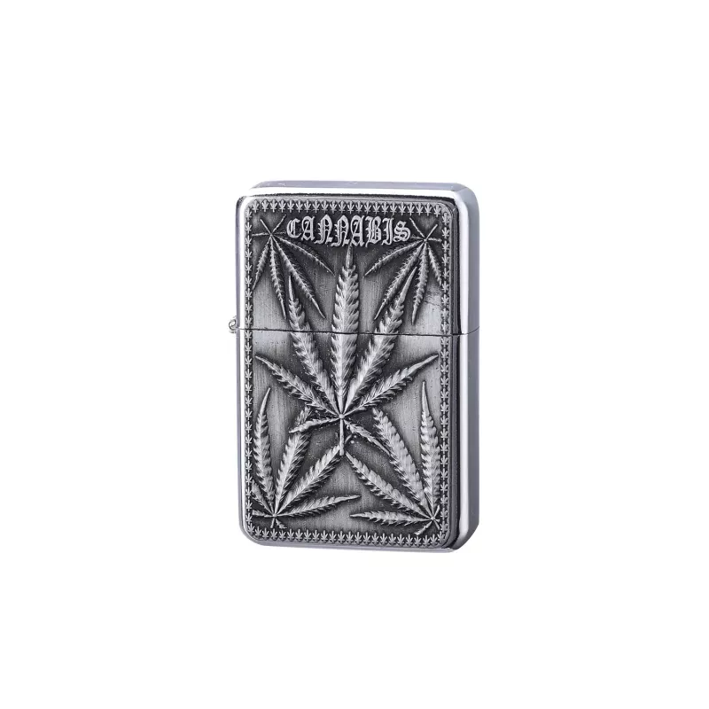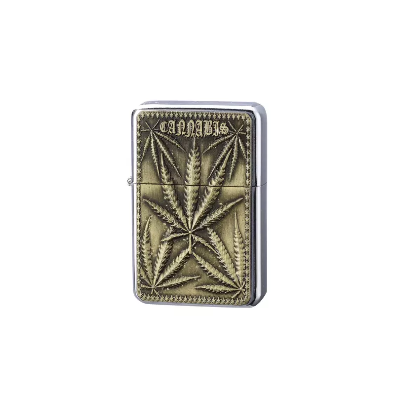 Запальничка бензинова CHAMP LEAVES, метал накладка лист канабис хрлом, золотистий (40400230K)
