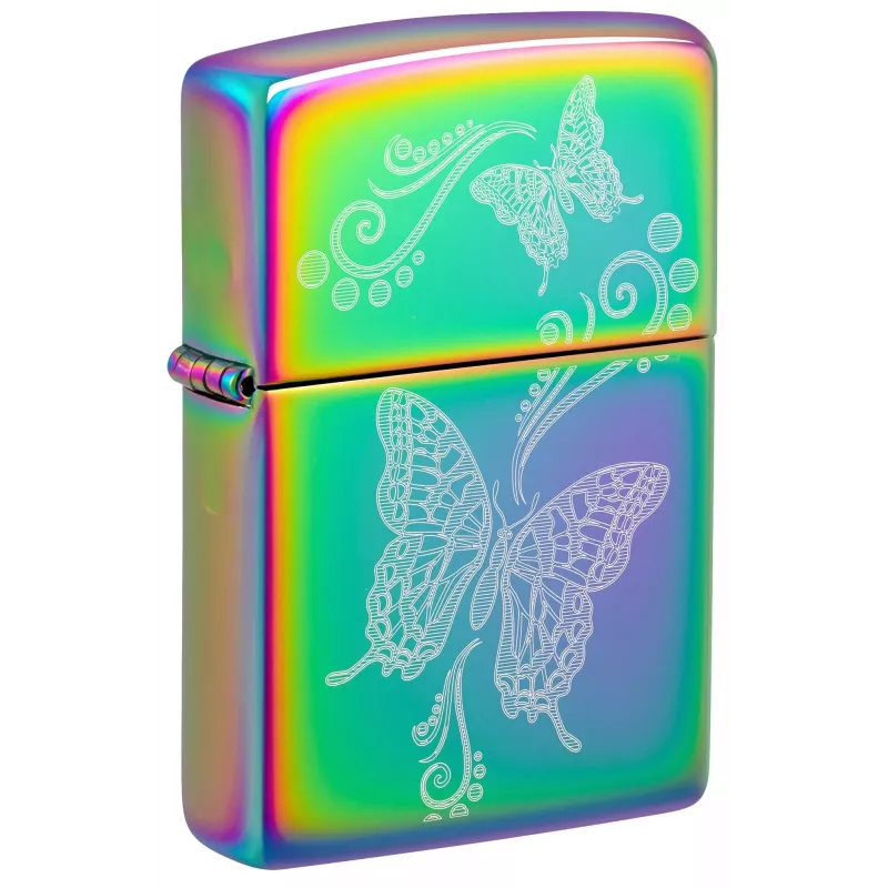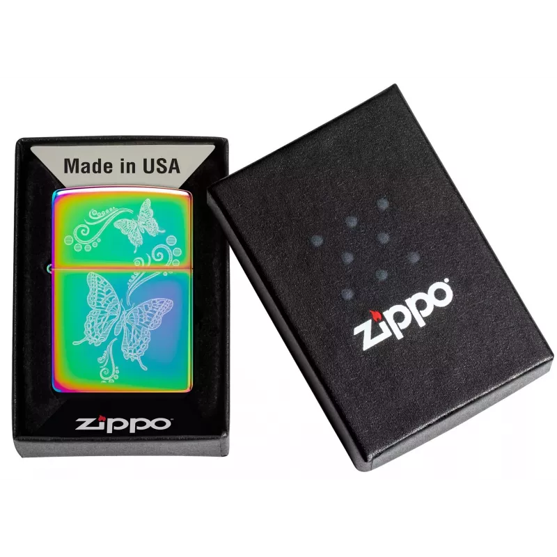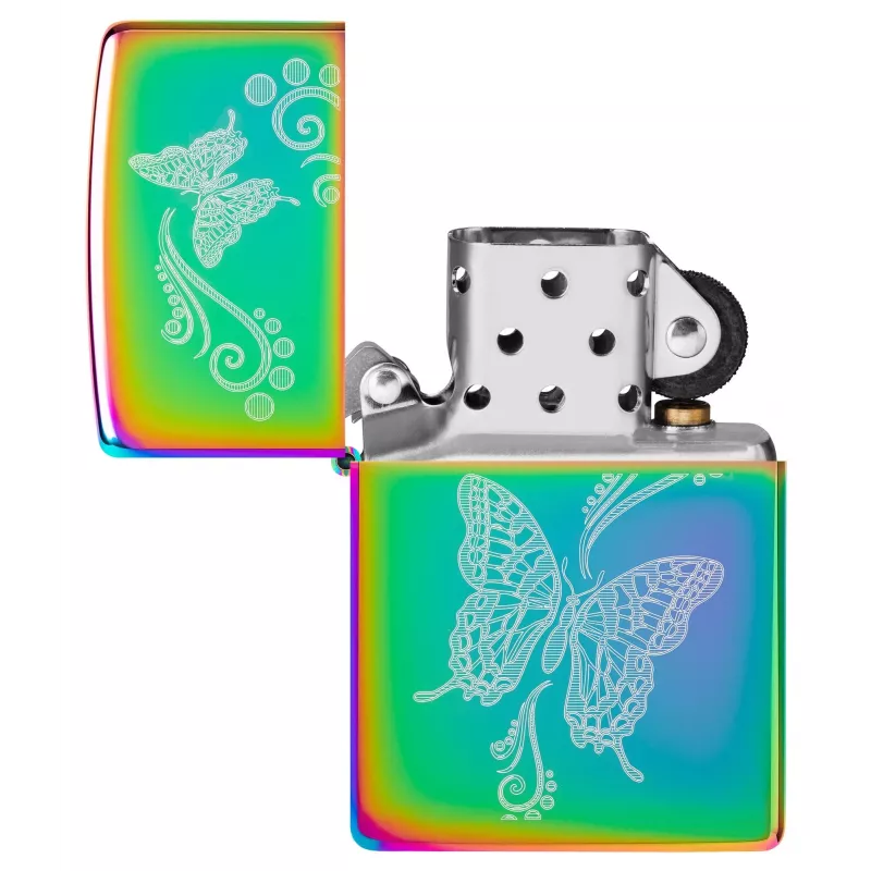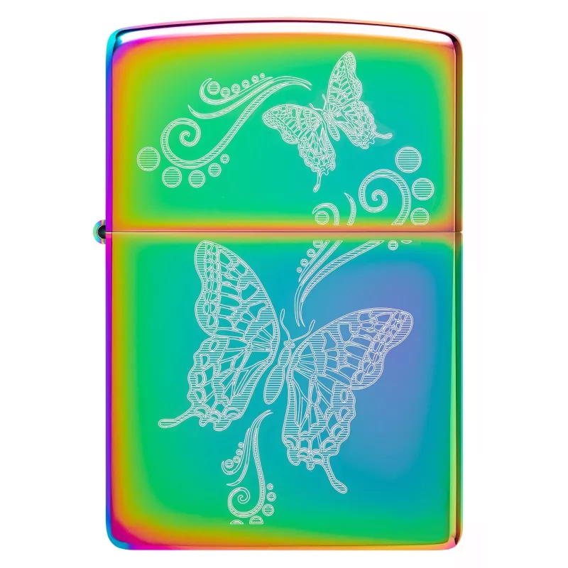 Вишукана запальничка Zippo з дизайном Butterfly Design Laser Fancy Fill Multicolor — справжній витвір мистецтва. Два вишукані метелики в оточенні витончених завитків філіграні пурхають по поверхні запальнички, створюючи заворожливу композицію. Унікальна лазерна техніка нанесення Laser Fancy Fill та багатокольорове покриття роблять кожну запальничку по-справжньому унікальною.