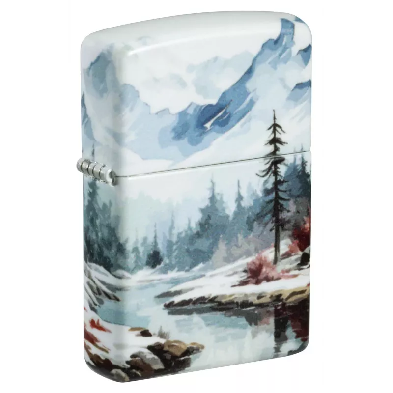 Запальничка уособлює тишу і усамітнення, відображені в цьому чудовому дизайні 540 Color. Спокійний зимовий пейзаж простягається з усіх боків вироби, вкриті ніжними квітами та деталями. Поставляється у подарунковій коробці. Для оптимальної роботи заправляйте запальничкою Zippo.