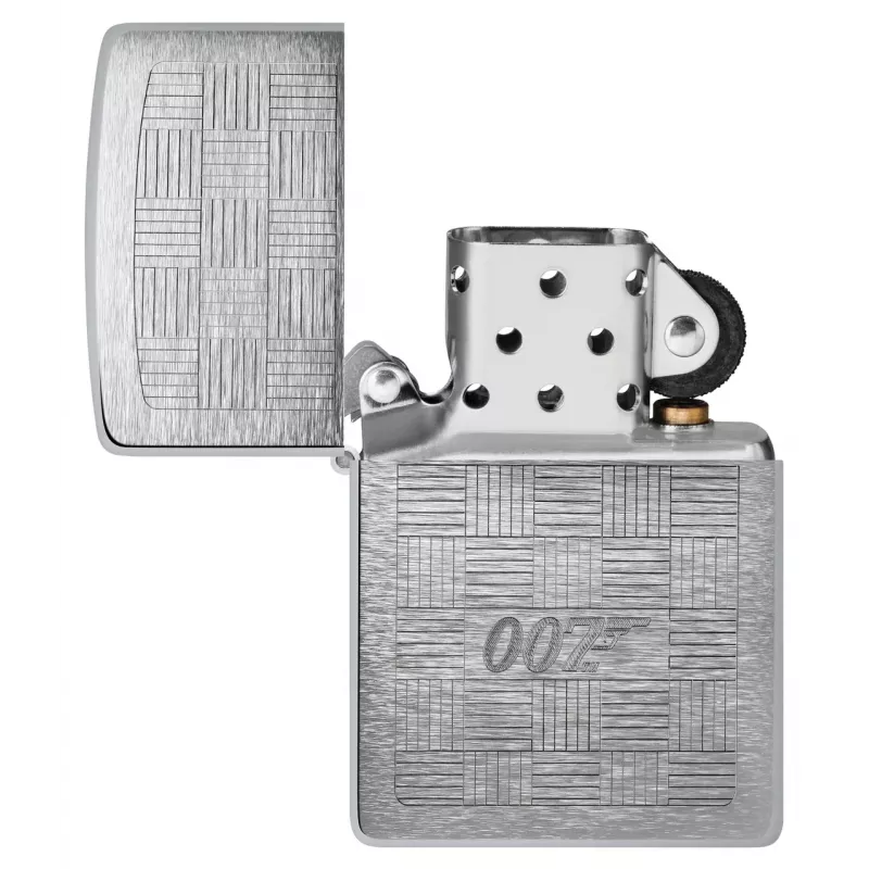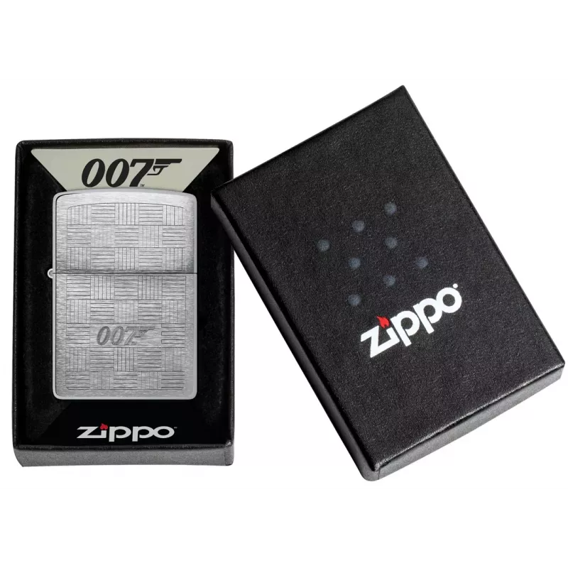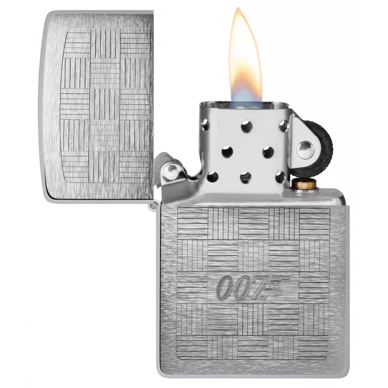 Джеймс Бонд® відомий своїм стилем, і ця класична запальничка з матовим хромом імітує зовнішній вигляд та текстуру найкращих костюмів. Вишуканий сітчастий візерунок із логотипом 007™, виконаний у класичному стилі Auto Engrave, розташований у центрі запальнички..