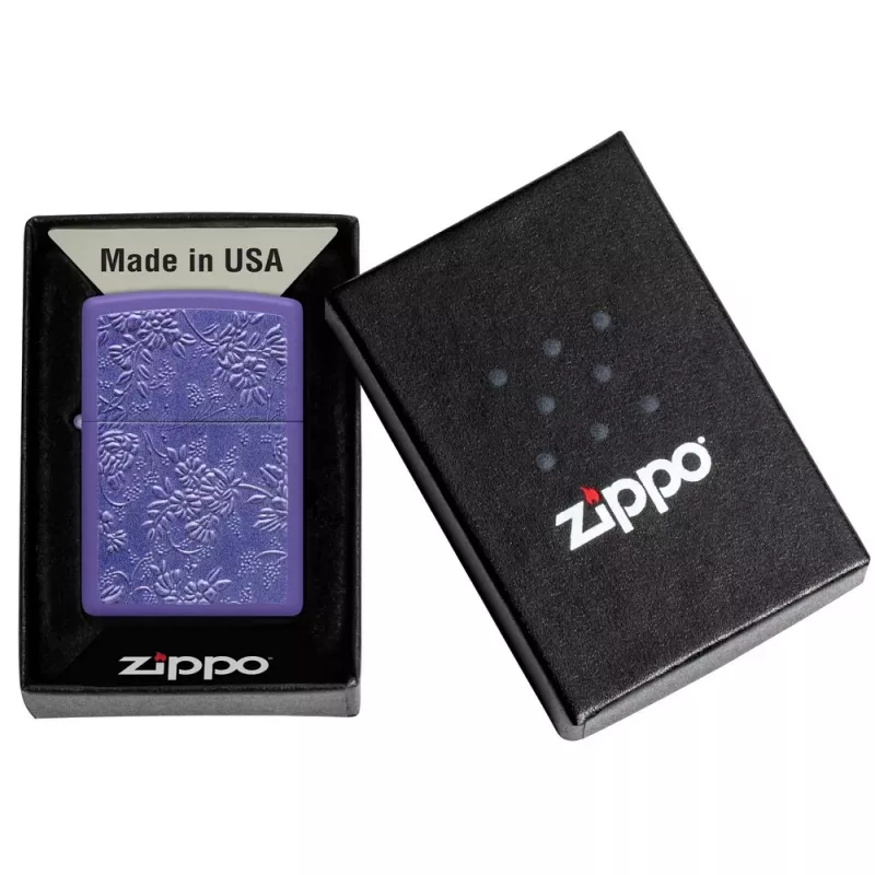 | Zippo | Представляємо запальничку Zippo Texture Bouquet Design в елегантному фіолетовому матовому корпусі – витончене поєднання природної краси та легендарної якості. Делікатна композиція з квітів та ягід прикрашає класичний корпус, а інноваційна техніка Texture Print створює тактильний тривимірний ефект: візерунок ніби піднімається над поверхнею, даруючи неповторні відчуття при дотику. Поставляється у подарунковій коробці. Зроблено у США. Довічна гарантія від виробника.