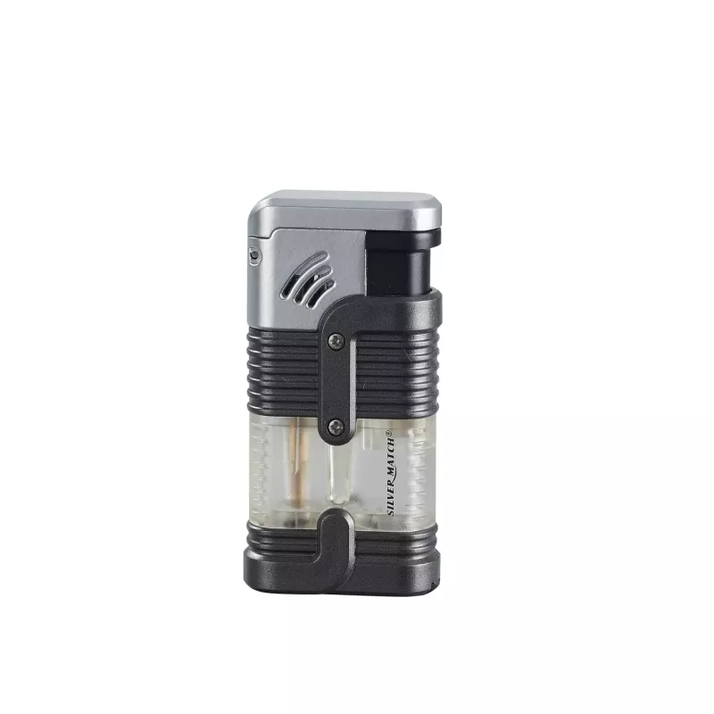 Це турбо-запальничка Silver Match із потрійним струменевим полум'ям та пирсером (пробійником) для сигар.