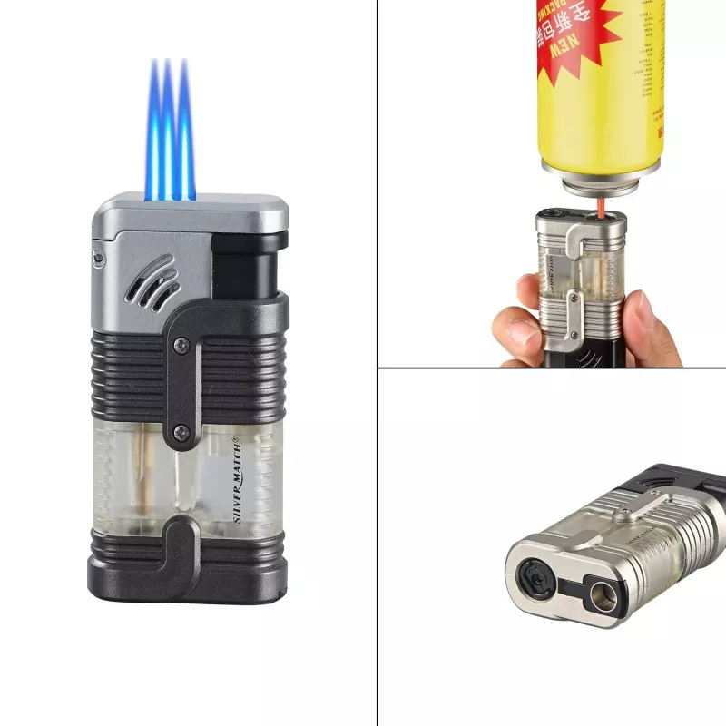 Ця вітрозахисна запальничка складається з 3 пальників, високоякісне потрійне струменеве полум’я дуже ефективно працює навіть у вітряну погоду.
