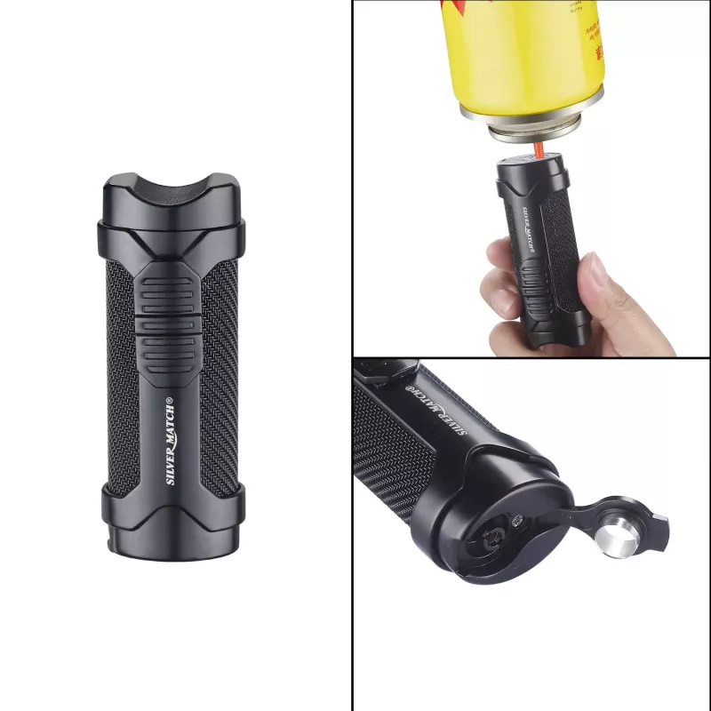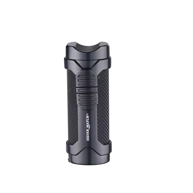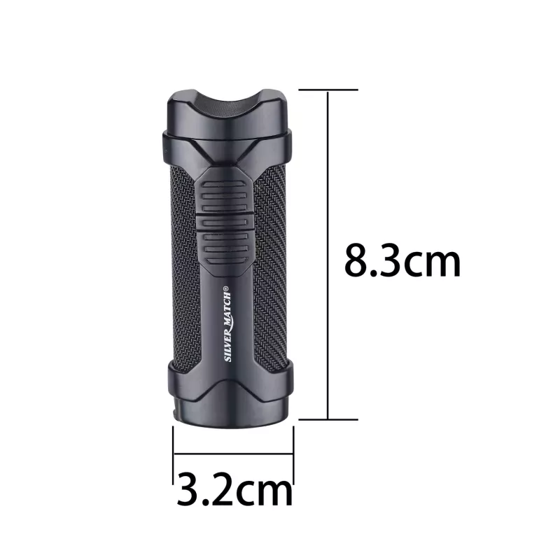 Стильна металева запальничка турбо на три потужних турбо полум'я. Особливістю цієї запальнички є її форма, як невелика USB колонка. На кришці запальнички є місце для сигари, а внизу запальнички висувається пробійник для сигари. На дні стандартний клапан для заправки газом та регулювання величини сили полум'я. На задній панелі віконце для контролю газу. Постачається в гарній подарунковій коробці.