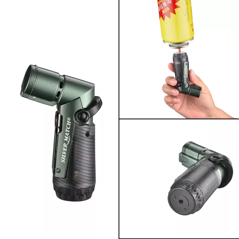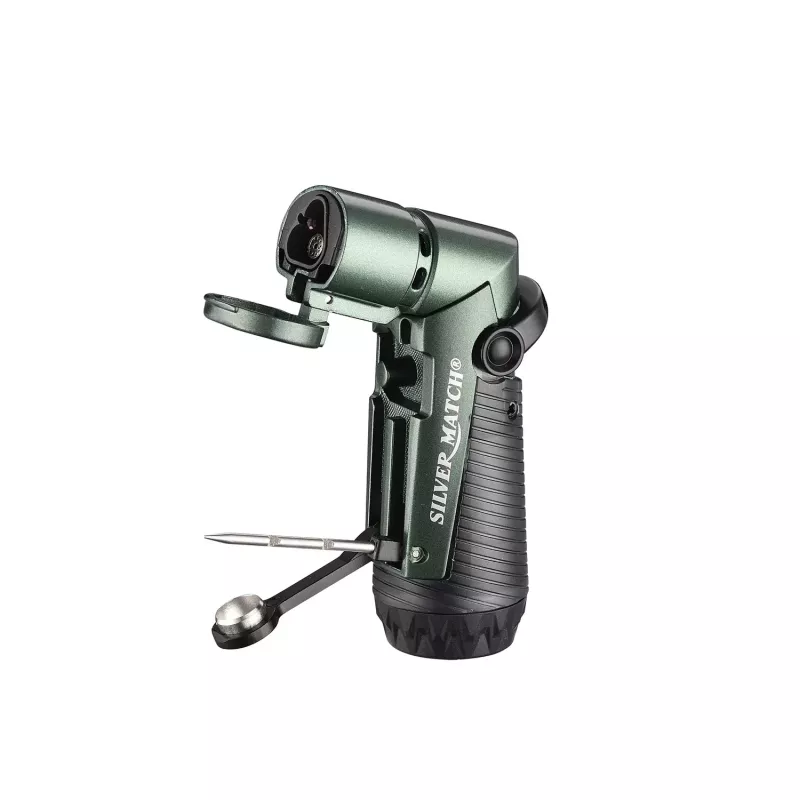 Запальничка газова для сигар 3 турбо з інструментом SILVER MATCH SKOPJE метал, чорно-зелений, подарункова коробка (40674380GRE)