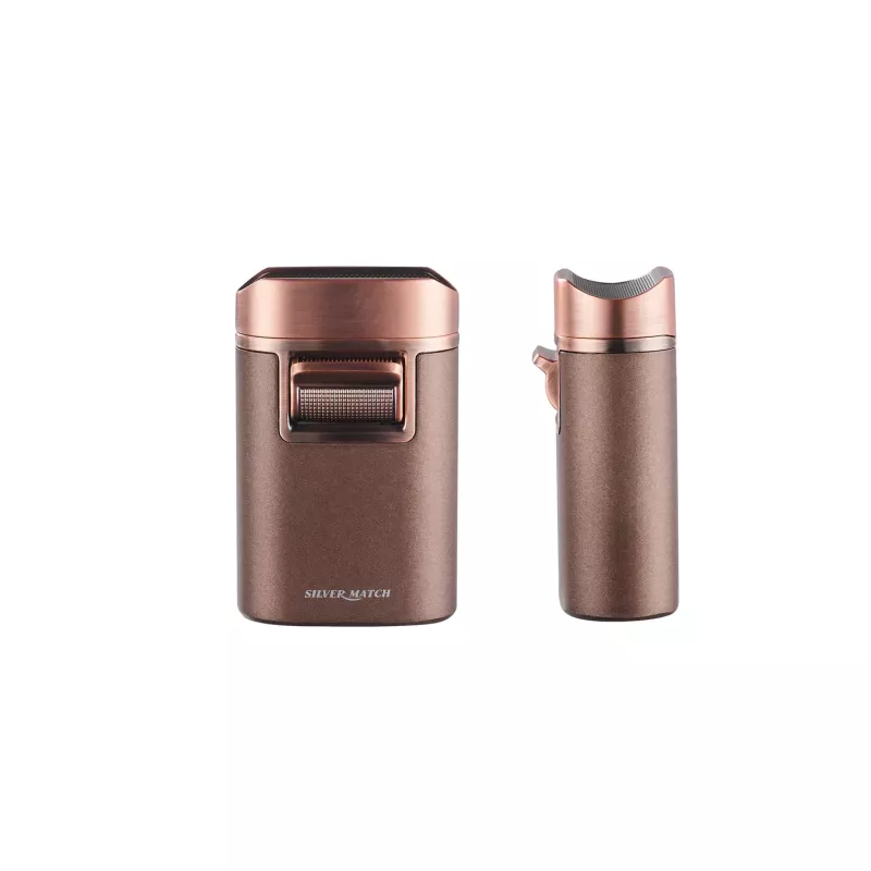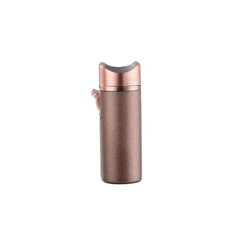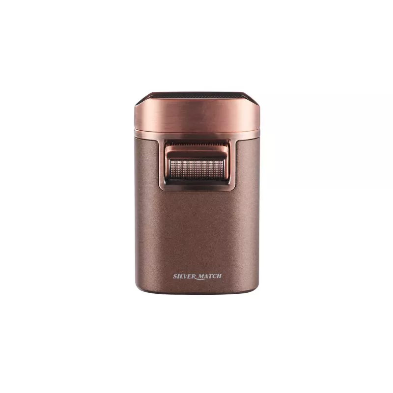 Настільна запальничка благородного мідного кольору із потужним квадро турбополум'ям стане чудовим придбанням або подарунком для поціновувачів сигар. Стійка, надійна, візуально прекрасна, її неможливо не помітити на столі. Особливістю цієї запальнички є ложе для сигари, де вона може відпочити та поділитися з господарем своїм ароматом. У неї стандартний клапан для заправки газом, а також регулятор висоти полум'я. Є віконце контролю газу, запальничка потребує зарядки більшою кількостью газу, за рахунок своїх розмірів та потужності. Висота запальнички 8,3 см, ширина 5,4 см, товщина 2,8 см. Для справжніх шанувальників прекрасних речей. Поставляється в красивій подарунковій коробці.