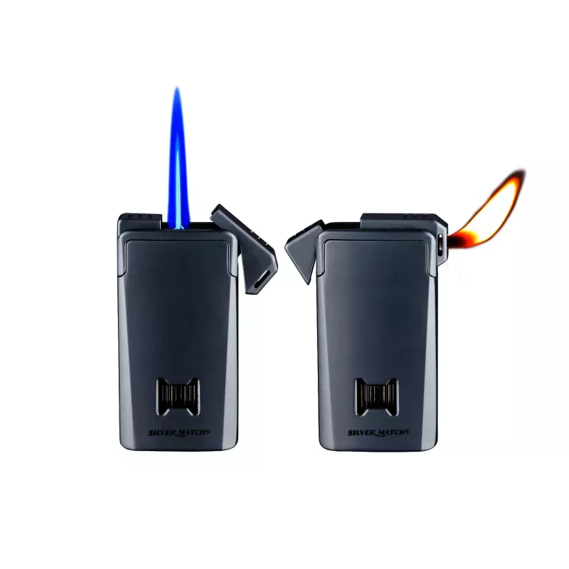 Ця запальничка лаконічної форми та суворого кольору стане цікавим придбанням для тих, хто любить курити як сигарети чи сигари, так і трубку. Щоб не переплутати клавішу натискання, віконце контролю газу знаходиться на передній частині запальнички, тримаючи запальничку в правій руці, великим пальцем активується полум'я турбо.
