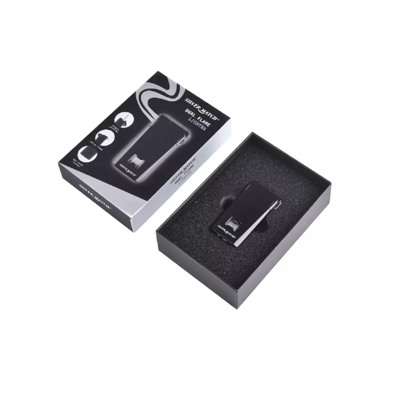 Запальничка газова п'єзо турбо Silver Match Chisinau на два полум'я, метал, чорна, подарункова коробка (40674382BL)