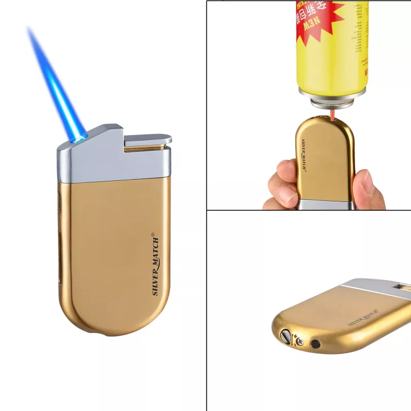 Елегантна, стильна, тонка і важка в руці металева запальничка однотурбова з п'єзо підпалом від Silver Match. Точне, сильне, надійне полум'я. Запалювання відбувається при натисканні кнопки. Доступна в різних кольорах, працює на газі та має стандартний багаторазовий клапан для заправки. Зручна як для правші, так і шульги. Поставляється в оксамитовому мішечку, що робить її ідеальним подарунком для різних випадків.