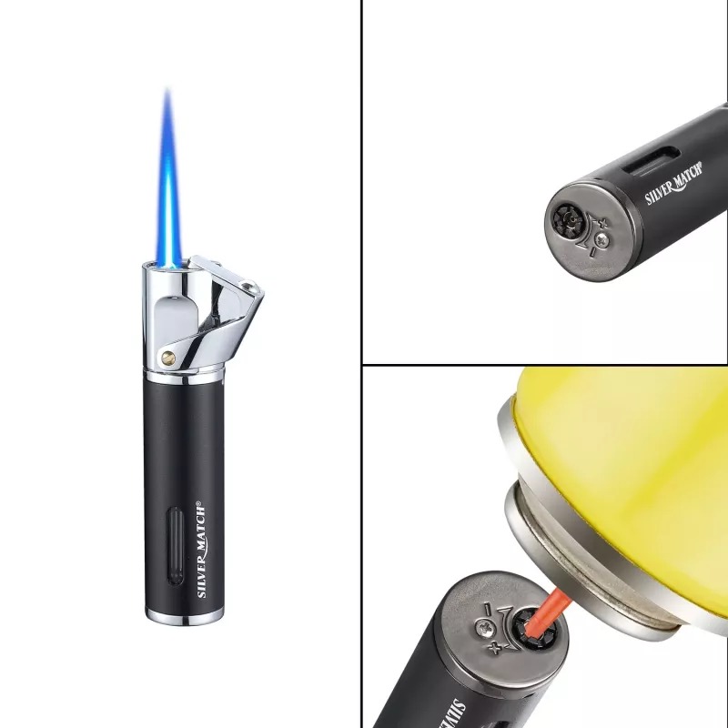 Ідеальна запальничка Silver Match для тих, хто цінує елегантність та практичність в одному аксесуарі. багаторазова, металева, важка і приємна в руці запальничка має потужне турбо-полум'я та надійне підпалювання сигари або сигарети.