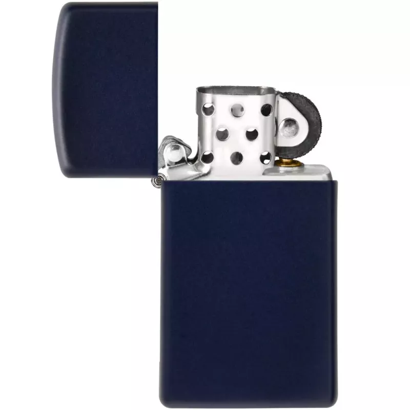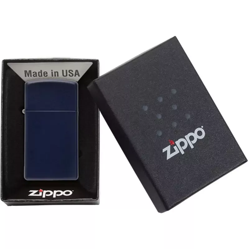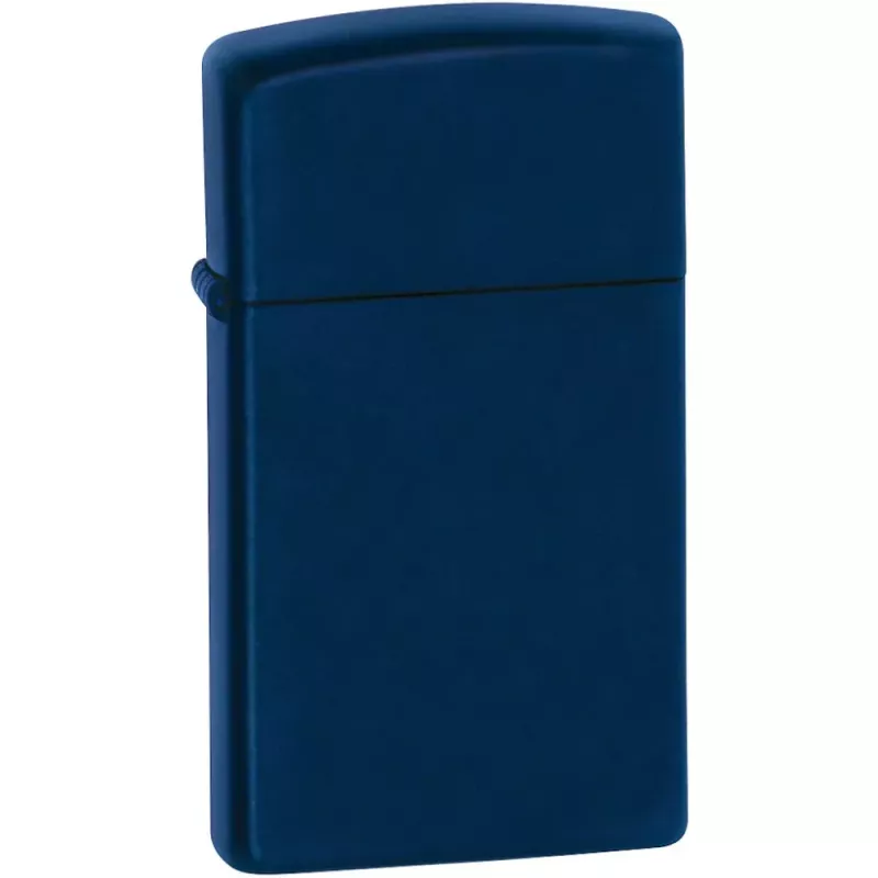 Зменшена версія класичної вітрозахисної запальнички. Ця вузька матова запальничка Slim® темно-синього кольору легко поміститься у кишені, сумці чи гаманці. Поставляється у подарунковій коробці. Для оптимальної роботи заправте запальничку бензином Zippo.