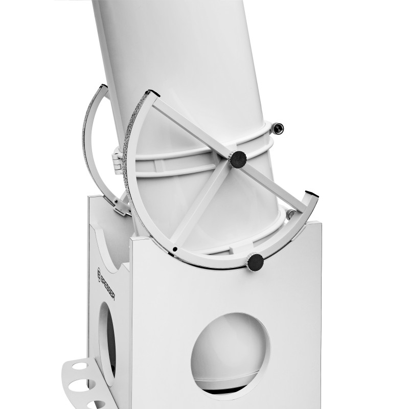 | Комплектація | Труба: стальна Монтування: ламіноване ДСП з металевими роликовими підшипниками Окуляр: 25 мм SuperPloessl (Ø 31,7 мм/1,25'') з повним багатошаровим просвітленням Видошукач: оптичний 6x30 Апертурний Сонячний фільтр Подовжувач 37,5 мм для 2,5'' Hexafoc Адаптер для окуляра Ø 31,7 на 50,8 мм Хомут для труби – 2 шт. Опорне колесо висоти – 2 шт. |
