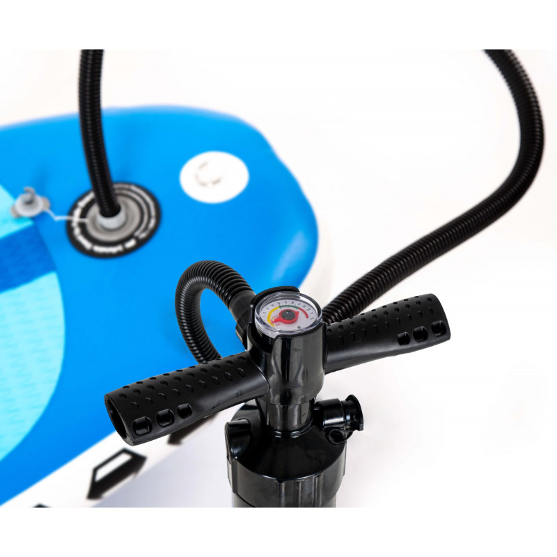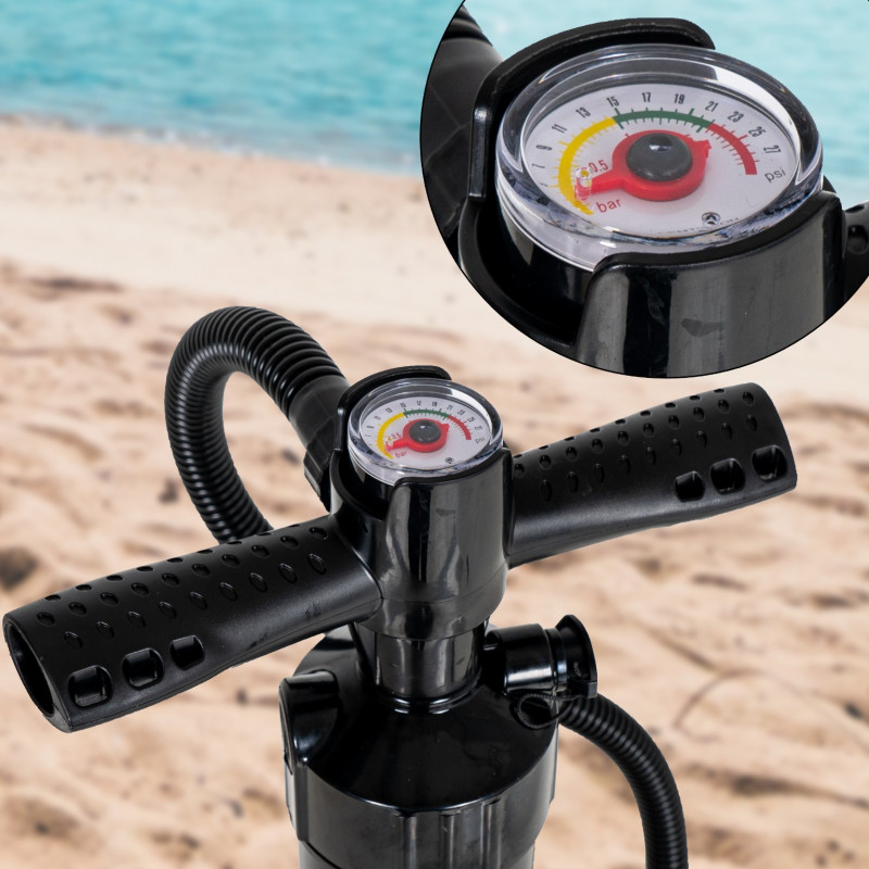 Вбудований манометр дозволяє точно контролювати тиск, забезпечуючи стабільність та безпеку на воді . Насос THUNDER® подвійної дії для SUP-дошки дозволяє досягати тиску до 2 бар (29 PSI), забезпечуючи жорсткість та стабільність вашої SUP-дошки.