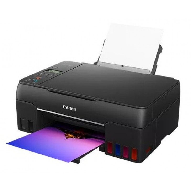 PIXMA G640 - це перший багатофункціональний принтер у лінійці PIXMA G із шістьма поповнюваними ємностями для чорнила на основі барвників; він пропонує незрівнянну якість фотодруку та можливість створювати великі об'єми друкованої продукції зі значною економією коштів.