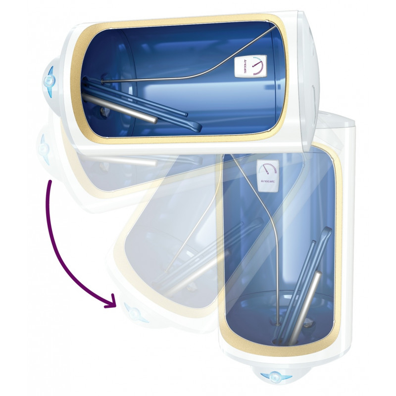 Водонагрівачі/бойлери сімейства продуктів Anticalc призначені для довгострокової і надійної роботи в домогосподарствах, де вода характеризується як тверда, високо мінералізована та/або хімічно агресивна. Збільшена площа подвійного нагрівального елемента, розташованого в сталевому емальованому корпусі з гладкою поверхнею, значно уповільнює і обмежує процес осадження накипу.
