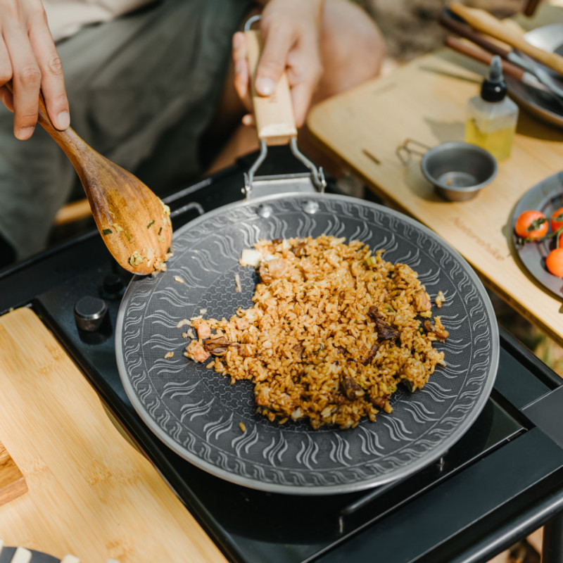 Сковорода Naturehike CNK2550CF011 універсальна для приготування різних страв — від швидкого сніданку до повноцінної вечері. Після приготування залишки їжі легко видаляються серветкою або м'якою губкою, що скорочує час на прибирання та знижує витрату води.