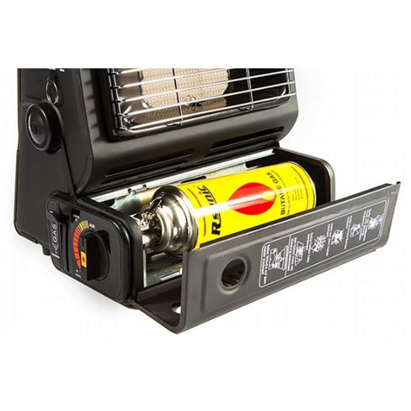 Портативний газовий обігрівач TRADIS є відмінним джерелом тепла у похідних умовах та при відсутності опалення й електропостачання у приміщеннях. Потужність 1,3 кВт забезпечує ефективний обігрів площ до 20 кв.м. Обігрівач може працювати як від газового балончика з цанговим з’єднанням, так і від звичайного (редуктор для підключення входить в комплектацію).