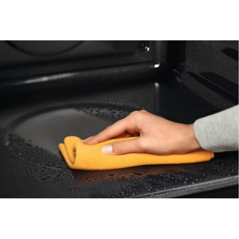 Чищення після приготування їжі не повинно бути складною справою — наша духова шафа очищується за допомогою додаткової вологості. Система AquaClean випаровує воду з дна духової шафи, а пара послаблює пригорілий жир і залишки їжі, що залишилися на її поверхнях. Завдяки цьому можна з легкістю досягнути природної чистоти.