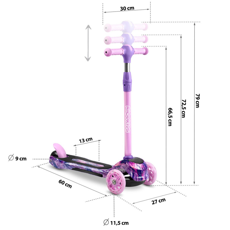 Самокат дитячий триколісний Ricokids Piko рожево-фіолетовий