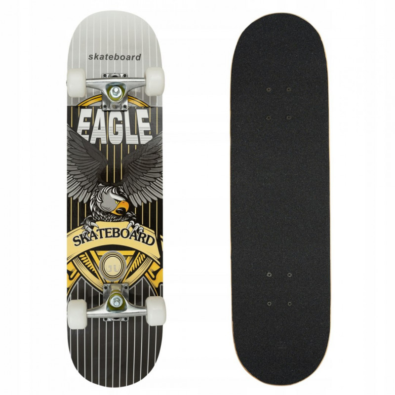 Молодіжний скейтборд MASTER Extreme Board - Eagle - чудовий вибір як для початківців, так і для досвідчених скейтбордистів. Міцна та надійна 9-шарова конструкція має невелику вагу та чудово підходить для навчання катанню.