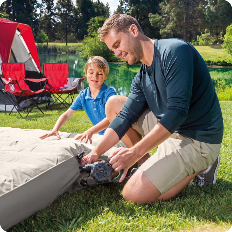 Насос являє собою компактний зручний пристрій призначений для швидкого надування матраців, басейнів, човнів та іншої "надувки" виробників Intex і BestWay.