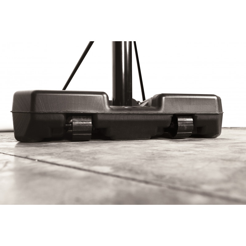 - Основа з чорного формованого поліетилену, оснащена колесами спереду, її можна наповнити водою для забезпечення стійкості під час гри.