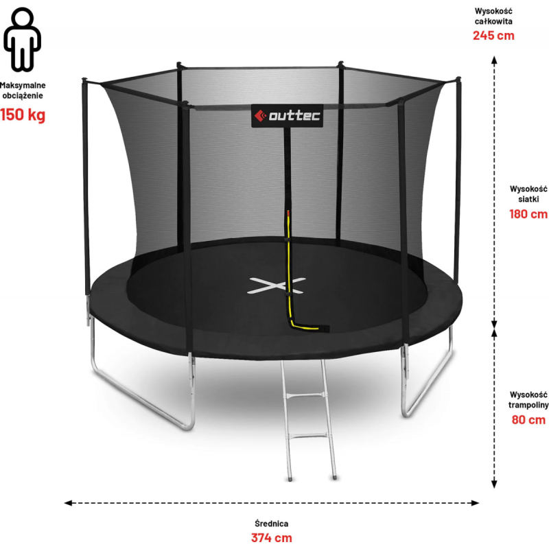 Батут OUTTEC Inside Net з внутрішньою сіткою 12 футів 374 см чорний