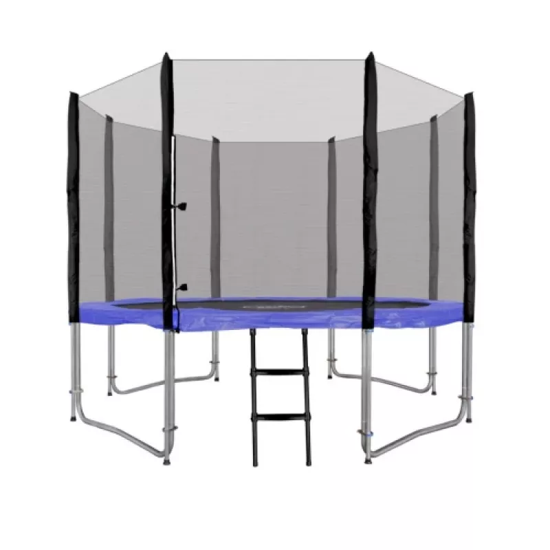 Представлений батут для має діаметр приблизно 305 см і оснащений 64 оцинкованими пружинами довжиною приблизно 13 см, що забезпечує високу гнучкість килимка. Каркас батута виготовлений із загартованої оцинкованої сталі, що підвищує його міцність і стійкість до погодних умов. Всього 4 U-подібні ніжки і сітка, натягнута на 8 стійок, забезпечують стійкість конструкції. Стійки, на які натягнута сітка, покриті захисною губкою, що підвищує безпеку використання. У набір також входить практична драбина, 16 засувок з кришкою для кріплення стовпів сітки та інструменти для складання батута.