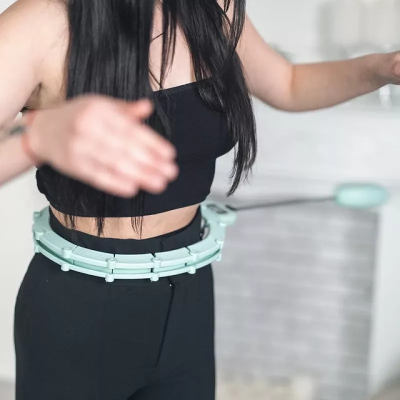 Підберіть розмір обруча до окружності вашої талії , щоб він був достатньо великим , але не занадто великим ( він повинен облягати ваші стегна ). Після того, як ви відрегулювали розмір, помістіть анкер із вагою всередину рейки та закрийте обруч . Потім киньте вагу в тому напрямку, в якому ви обертаєте стегна, і починайте вправу. Інтенсивність тренування залежить від швидкості обертання стегнами та відстані ваги від тіла .
