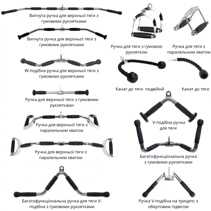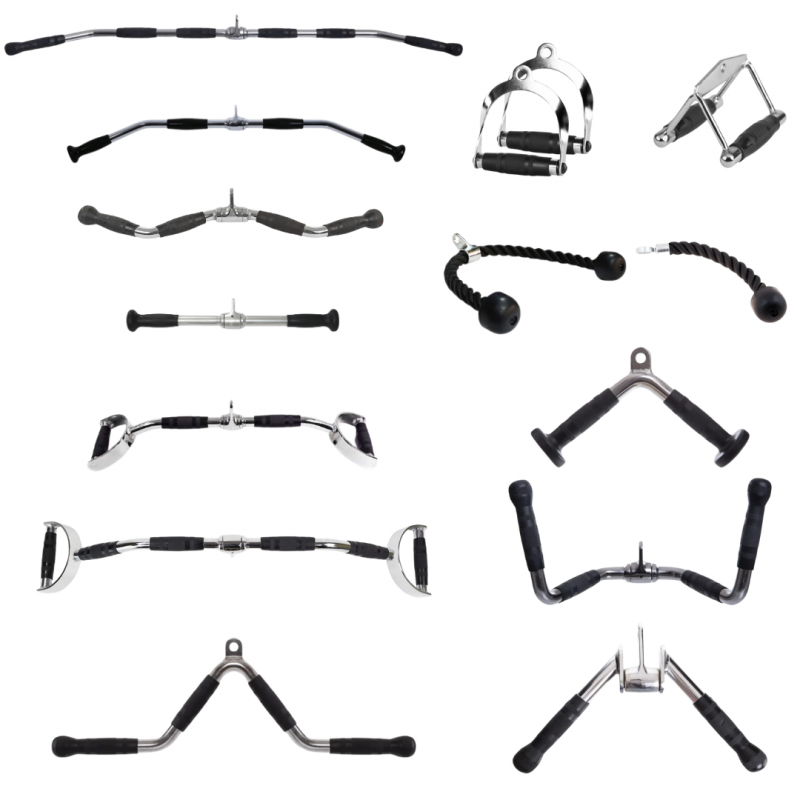 Набір ручок для тяги York Fitness з 15 предметів - це комплект аксесуарів для тренувань, який включає різні ручки та додаткові елементи для виконання вправ на тренажерах або блоках. Комплект містить різноманітні типи ручок, які дозволяють розширити можливості тренувань на різні м'язові групи. Ручки для тяги використовуються на багатьох тренажерах, оснащених тяговими блоками, під час силових тренувань. Ці аксесуари дозволяють користувачу під час занять максимально ефективно задіяти різні групи м'язів при роботі на тому самому тренажері. Наприклад, при виконанні аналогічної вправи з використанням різних ручок для тяги можна ефективно прокачувати м'язи спини, грудні м'язи, біцепс і трицепс. Комплект ручок для тяги York не лише надають ефективне тренування, але й створює стимулююче середовище для досягнення нових висот у фітнесі, підвищуючи мотивацію для тренування.