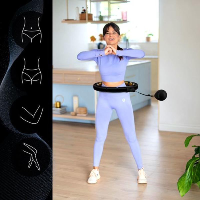 Як користуватися HHM13? Виробник подбав про те, щоб зробити своє обладнання простим у використанні, тому використання HMM13 не повинно викликати проблем. Відрегулюйте окружність, щільно закрийте пряжку, а потім зробіть кругові рухи стегнами. Коли почне діяти відцентрова сила, закріплений м'яч змусить м'язи живота і тулуба напружуватися. Компактні розміри дозволять вам брати цей хула-хуп з собою куди завгодно. Збірка виробу Відкрийте петлю за допомогою магнітних затискачів. З'єднайте наступні частини, вставляючи один елемент в інший, потрапляючи виступами у відповідні отвори. Якщо ви хочете зменшити кількість елементів, візьміться однією рукою за відповідний елемент і стисніть його таким чином, щоб витягнути виступи з отворів. Потім вставте в петлю рейку з гравітаційною кулькою, закрийте магнітні фіксатори і відрегулюйте довжину ремінця. Регулювання окружності та ремінця HHM13 має загалом 13 елементів, які ви можете вільно змінювати, регулюючи таким чином окружність кола. Розмір встановлюється в діапазоні від 9 до 13 елементів, що відповідає обхвату талії від 60 до 96 см. Крім того, завдяки регулюванню довжини ременя гравітаційного м'яча, ви контролюєте рівень складності виконуваних вправ. Чим довший ремінь, тим інтенсивніше тренування. З комплектом ефект настане швидше! Ваше тренування буде більш ефективним, якщо ви будете використовувати під час нього наш пояс для схуднення BR163. Така комбінація ще швидше зробить вашу фігуру стрункішою. Використання поясу збільшує потовиділення під час тренування, завдяки чому ми позбуваємося не тільки води з організму, але й токсинів, солей або деяких металів. BR163 також забезпечує більший комфорт, що дозволяє довше тренуватися. Що ви отримаєте завдяки тренуванням? Вправи, що виконуються з цим обручем, зміцнять м'язи живота, спини і навіть м'язи сідниць. Вони також допоможуть у досягненні стрункої талії та зменшенні жирової тканини. HHM13 використовується не тільки для фітнес-вправ, але й для реабілітації та виправлення дефектів постави. Всього півгодини безперервних тренувань дадуть вам очікувані результати! Ефекти від тренувань: Тонка талія Плоский живіт Зменшення жирової тканини Стрункі руки Релаксація Підтягнуті стегна і сідниці Зменшення целюліту Покращення кровотоку Покращення постави Зміцнення витривалості організму