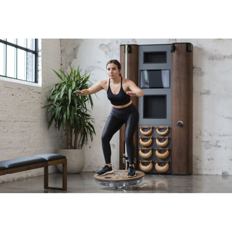 Балансувальна платформа Eau-Me Board виготовлена з високоякісної деревини ясена. Поєднання основи з резервуаром для води з полікарбонату забезпечує ефективне та результативне тренування рівноваги. Завдяки платформі Eau-Me ми покращимо координацію рухів та фізичну форму.