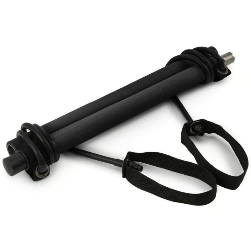 Чорна складна палиця для тренувань з еспандерами HS-T090GS від Hop-Sport - це простий та універсальний тренажер, що складається з гімнастичної палиці та еспандерів з ручками, прикріпленими до неї з обох боків. Тренування з палицею допомагає розширити діапазон рухів і наростити м'язову масу. Під час занять ви можете швидко змінювати положення тіла й адаптовувати тренування відповідно до своїх потреб.