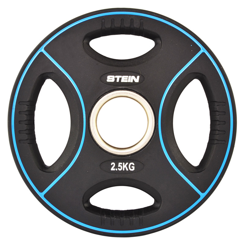 - високоміцне TPU (поліуретанове) покриття. кожна вага диска - з окантовкою різного кольору для зручності диференціації.